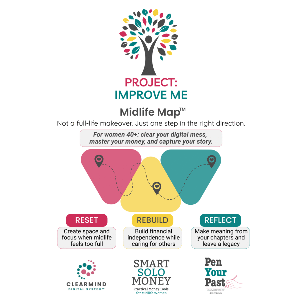 I’m Kari, and Project: Improve Me grew out of my own messy, beautiful life. This is a community for women over 40 who want to reset their digital lives, rebuild their money confidence, and reflect on their stories — all while finding encouragement (and a little laughter) along the way.